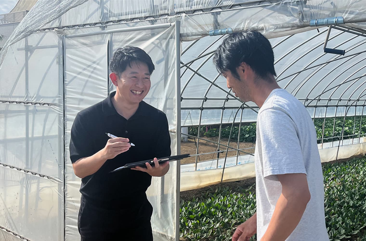 提案した種や苗、資材が導入され、実際に野菜が育ち、農家さんに喜んでいただく。それを最前線で体感できるのが大きな魅力です。当社の営業は裁量が大きく、自分の発想を活かせる自由度があります。特に資材については商社機能を活かし、肥料からビニールハウスの材料まで農業に関するあらゆるものを扱えるため、さまざまな角度から解決策を提示できます。さらにセミナーの企画や販促ツールづくりなども自分次第。自らの工夫が成果につながり、農家さんの笑顔に直結するのを実感できる環境です。